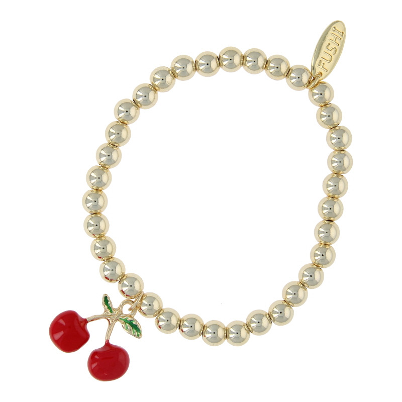 Armband 6mm 14krt met kersen hanger