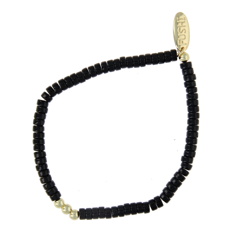 Armband halfedelsteen black obsidian schijfjes en 4mm 14krt