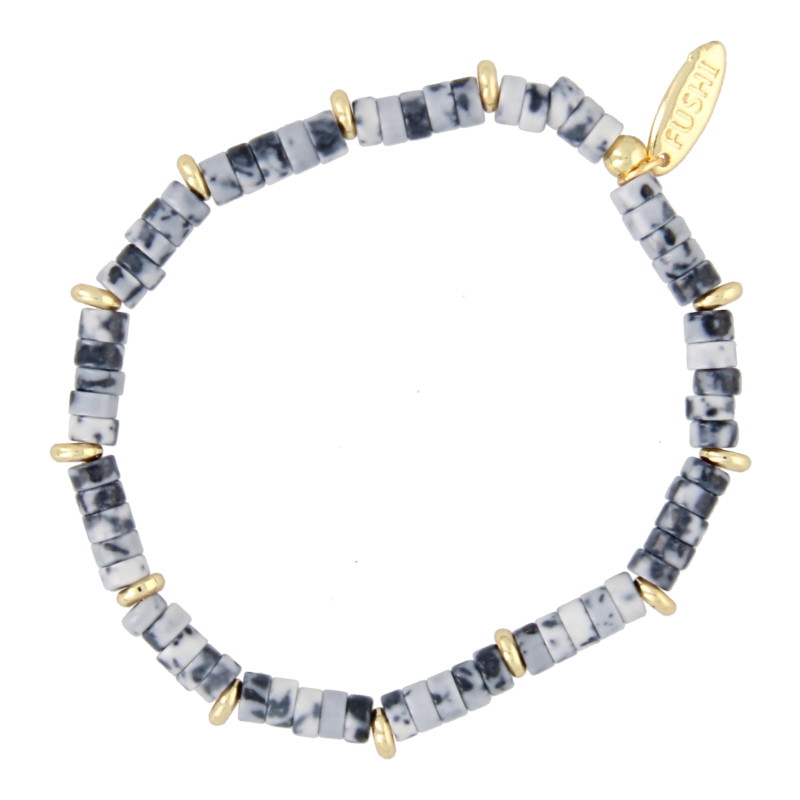Armband halfedelsteen agaat schijfjes zwart/grijs