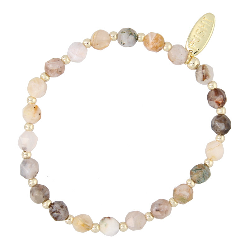 Armband 6mm halfedelsteen bruin agaat en 3mm 14krt