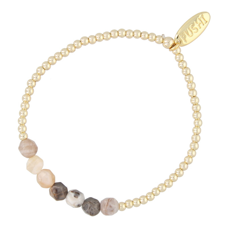 Armband 6mm halfedelsteen bruin agaat en 3mm 14krt