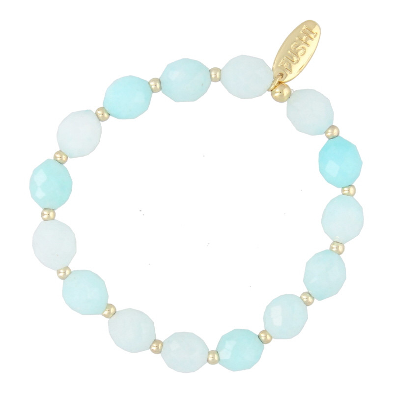 Armband halfedelsteen jade lichtblauw en 3mm goud