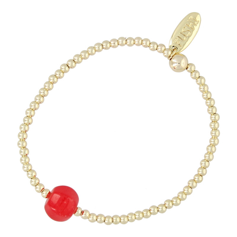 Armband halfedelsteen jade rood meloen en 3mm goud