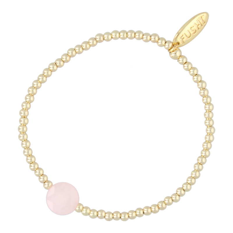 Armband halfedelsteen coin zachtroze 10mm en 3mm goud