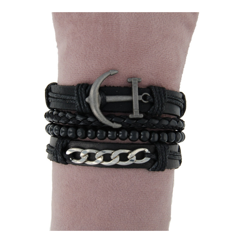 Heren armbandset zwart natuurleer 4pcs