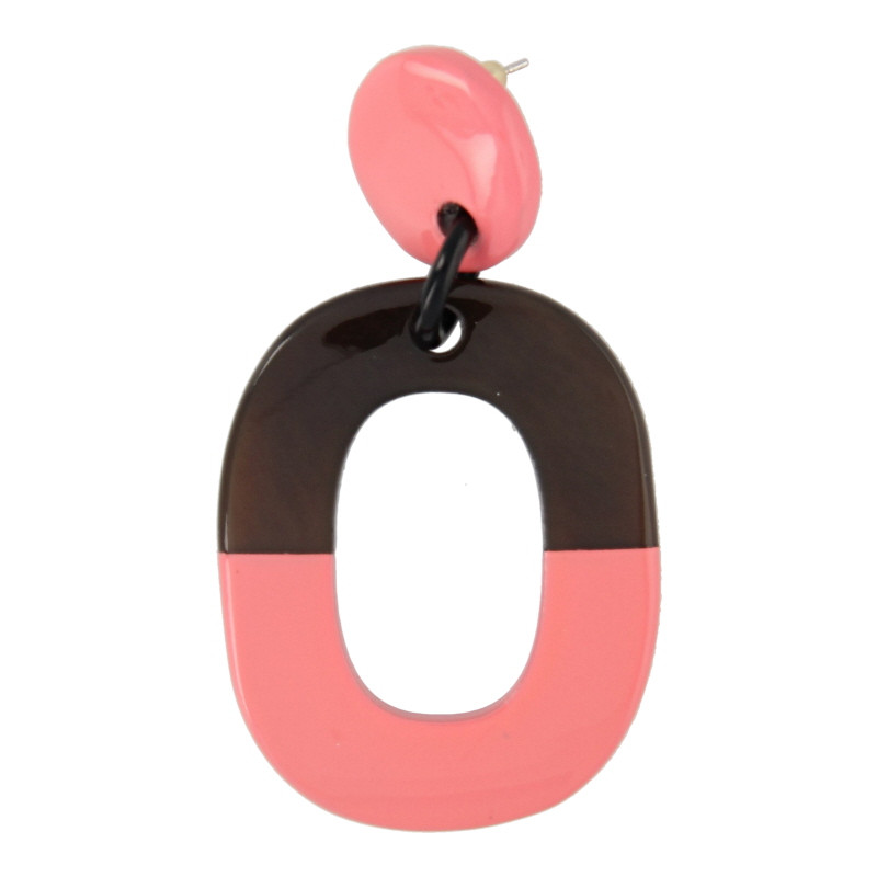 Oorbellen buffel hoorn ovaal half lacquer roze met roze knop