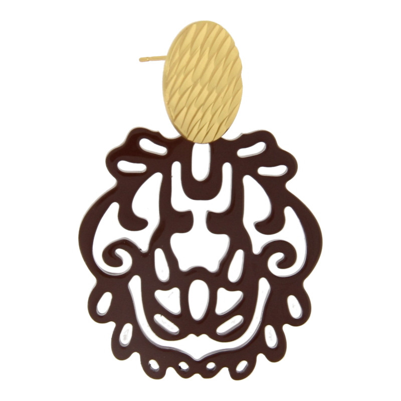 Oorbellen buffelhoorn ornament bruin