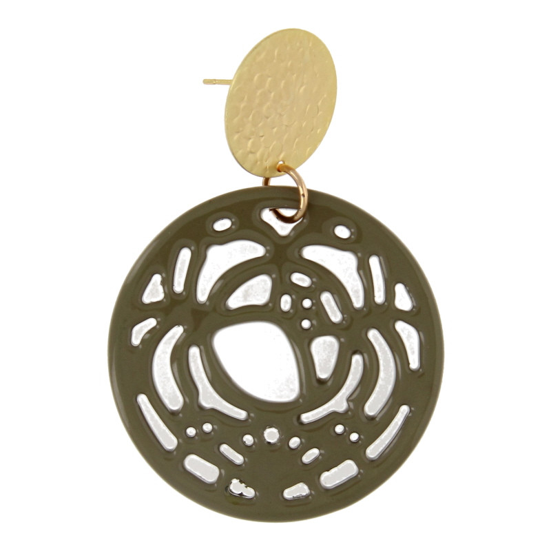 Oorbellen buffelhoorn rond opengewerkt legergroen