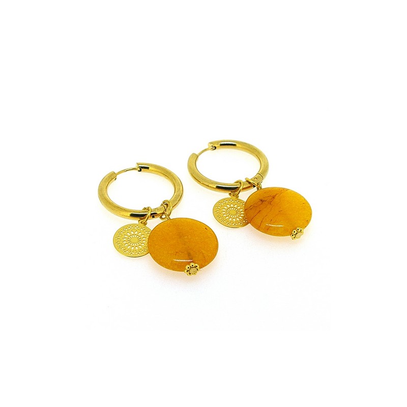 Oorbellen creolen goud met halfedelsteen agaat geel