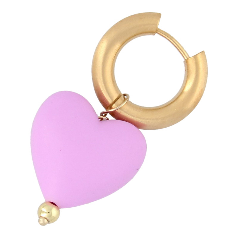 Oorbellen creolen met siliconen hart xl lila