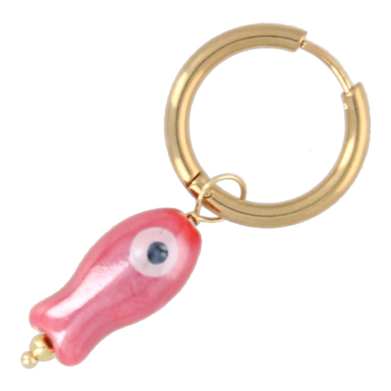 Oorbellen creolen met keramiek vis rood