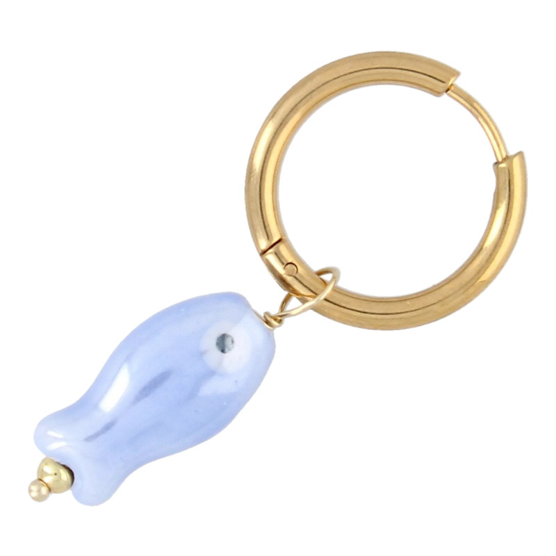 Oorbellen creolen met keramiek vis blauw