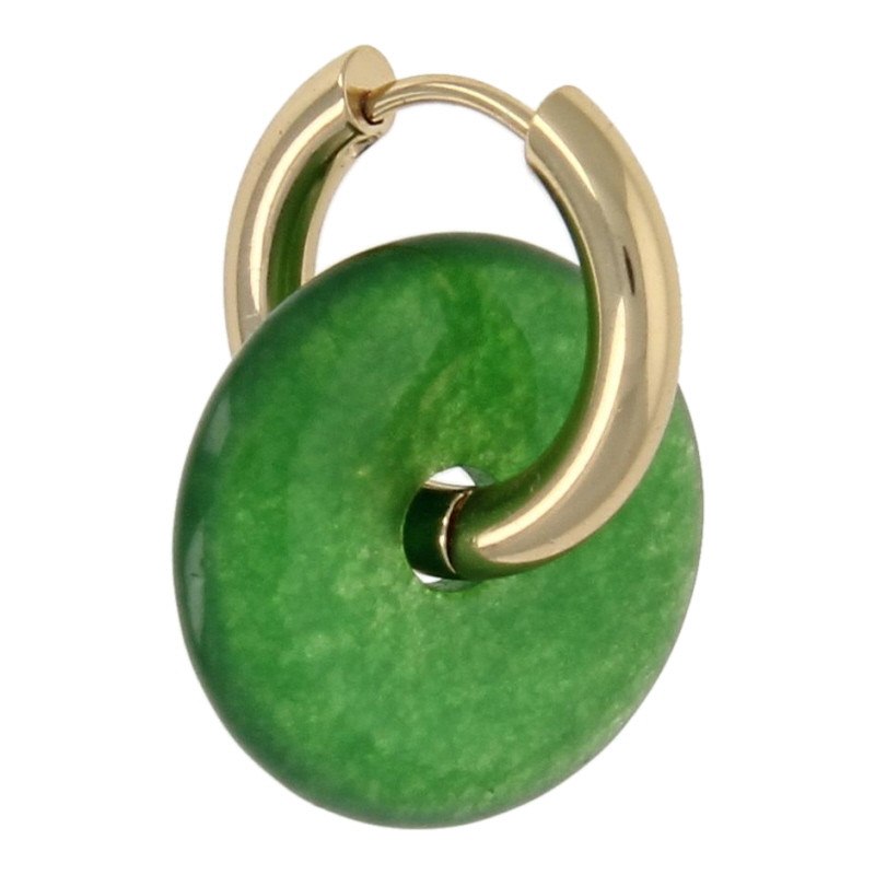 Oorbellen creolen met halfedelsteen jade schijf groen