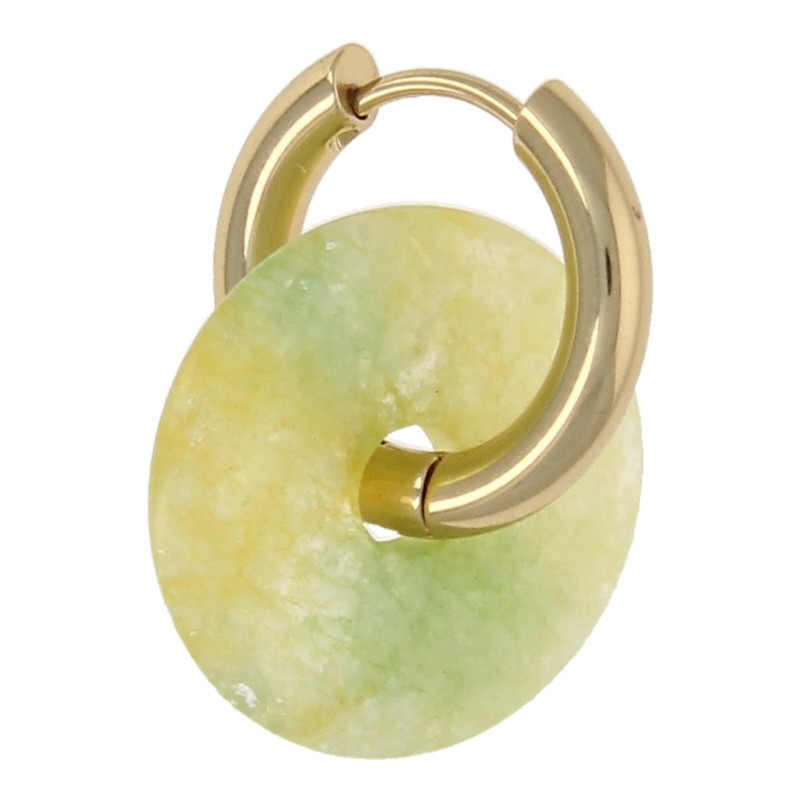 Oorbellen creolen met halfedelsteen jade schijf lime