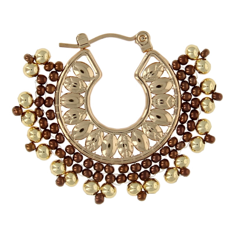 Oorbellen creolen met kraaltjes brons
