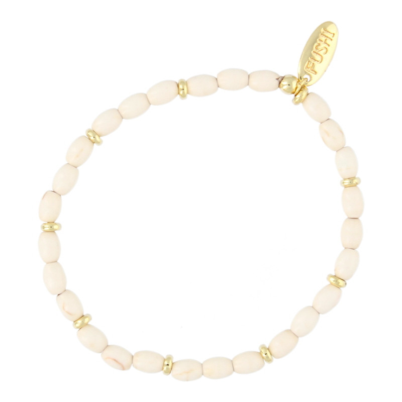Armband dyed turquoise ovaal wit en 14krt schijfjes