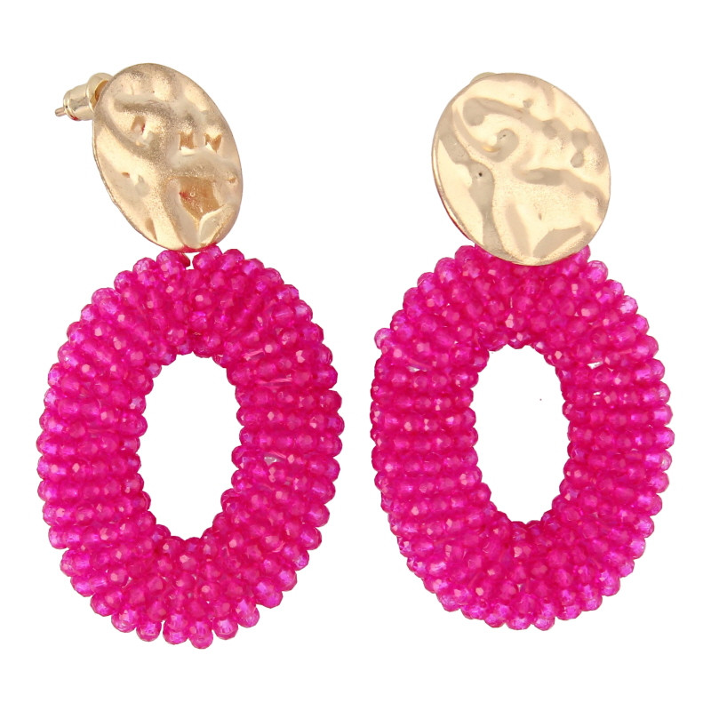 Oorbellen facetgeslepen glas ovaal fuchsia