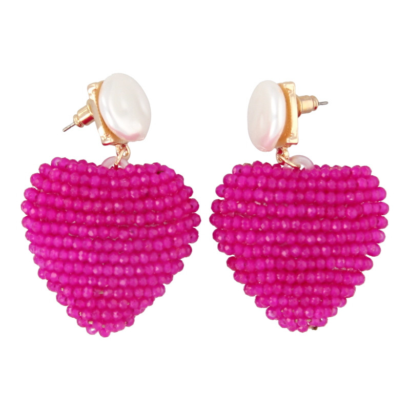 Oorbellen facetgeslepen glas harten met parel steker fuchsia