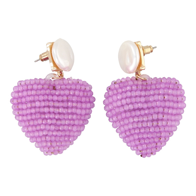 Oorbellen facetgeslepen glas harten met parel steker lila