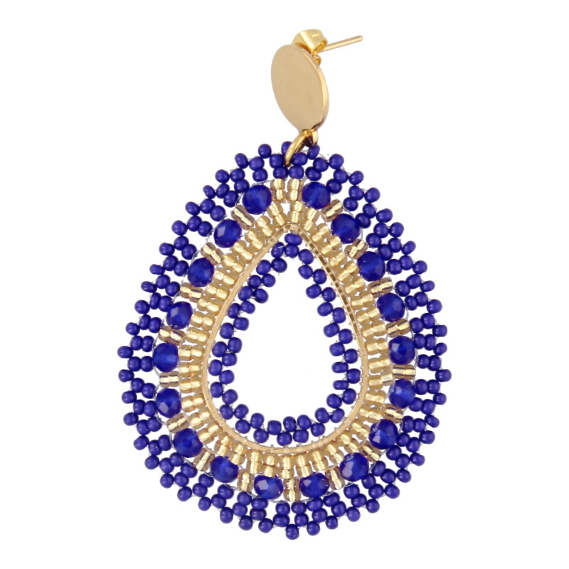 Oorbellen druppel met glaskraaltjes goud en koningsblauw