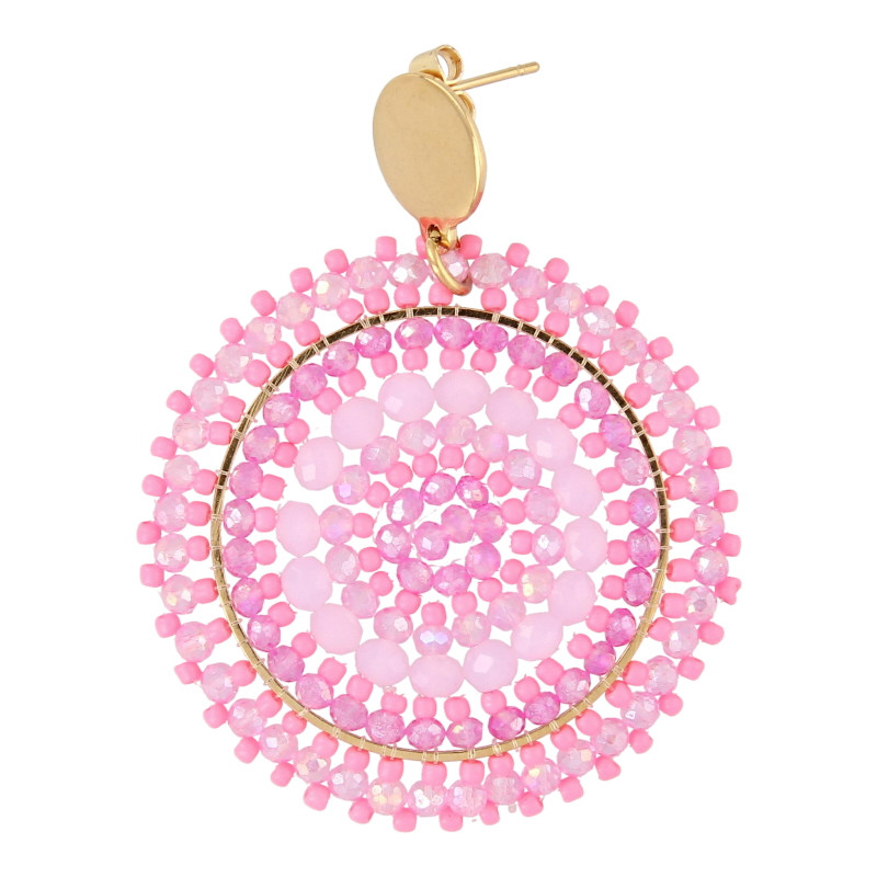 Oorbellen rond met facetkralen zachtroze en glaskraaltjes felroze