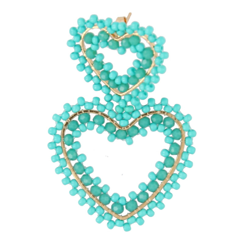Oorbellen hartjes met facetkralen en glaskraaltjes turquoise