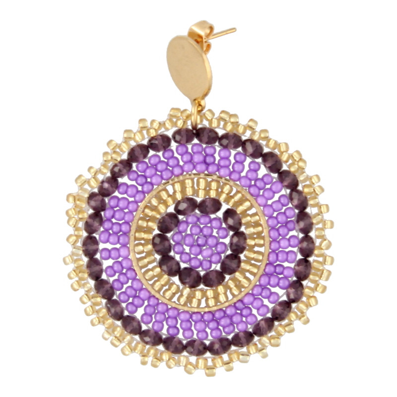 Oorbellen rond met facetkralen paars en glaskraaltjes lila en goud
