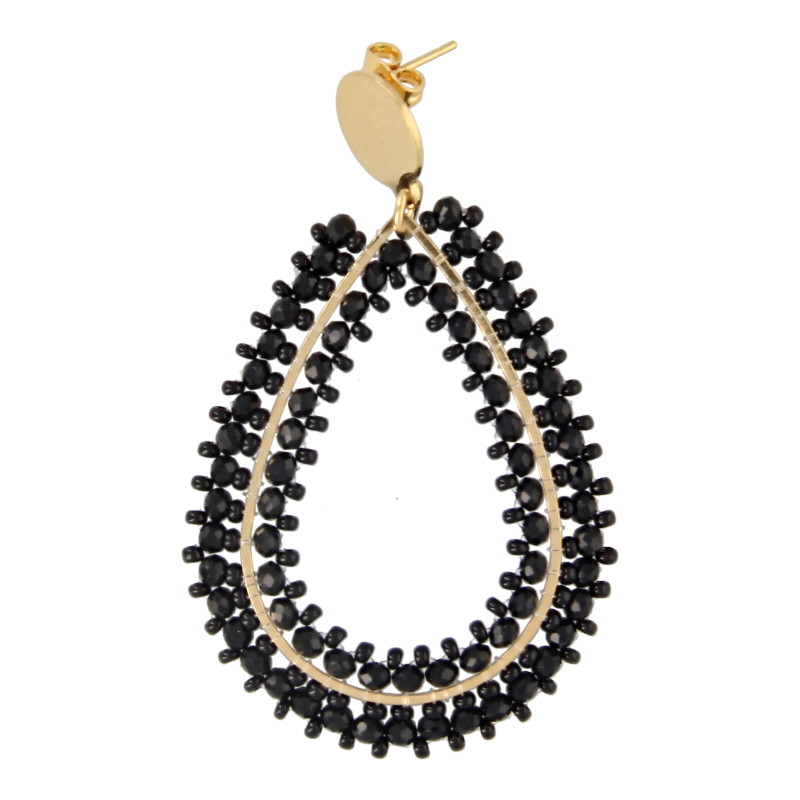 Oorbellen druppel met glaskraaltjes zwart