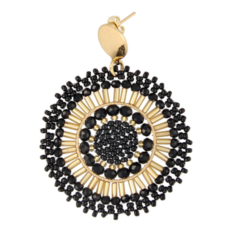 Oorbellen rond met glaskraaltjes goud en zwart