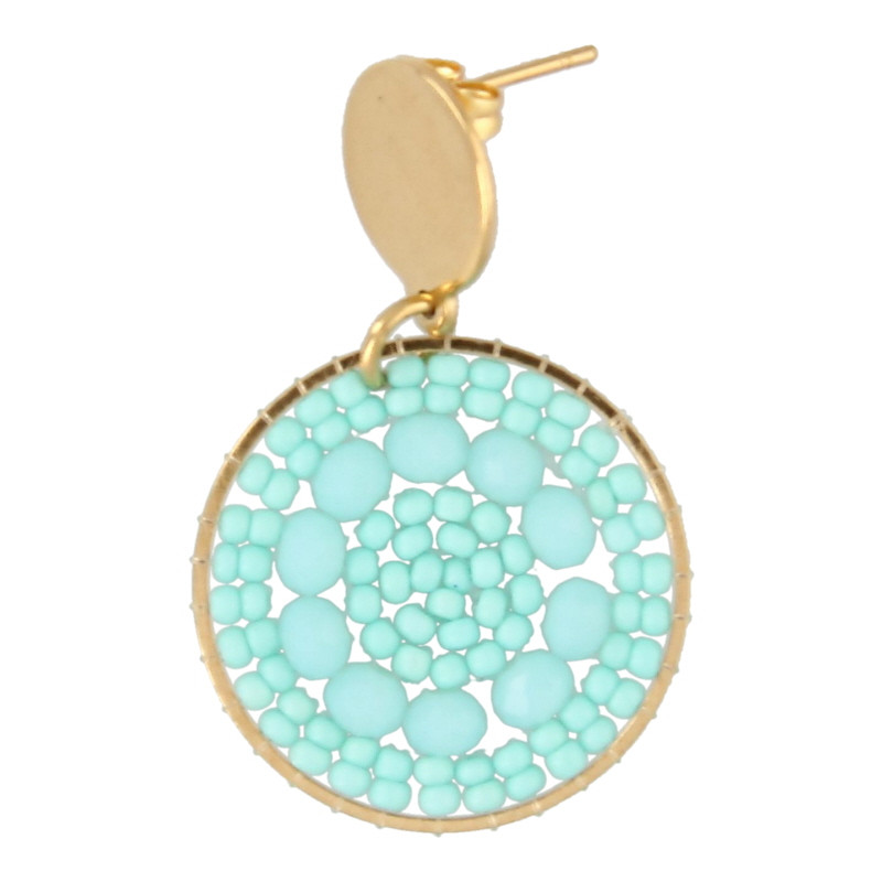 Oorbellen rond met facetkralen zachtblauw en glaskraaltjes zachtblauw