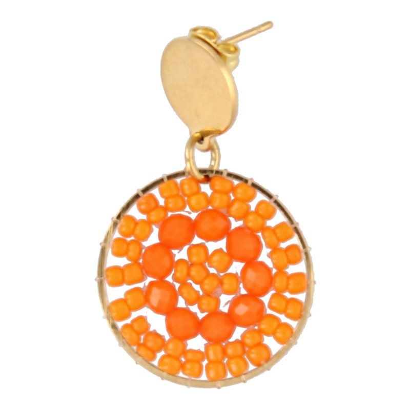 Oorbellen rond met facetkralen oranje en glaskraaltjes zachtoranje