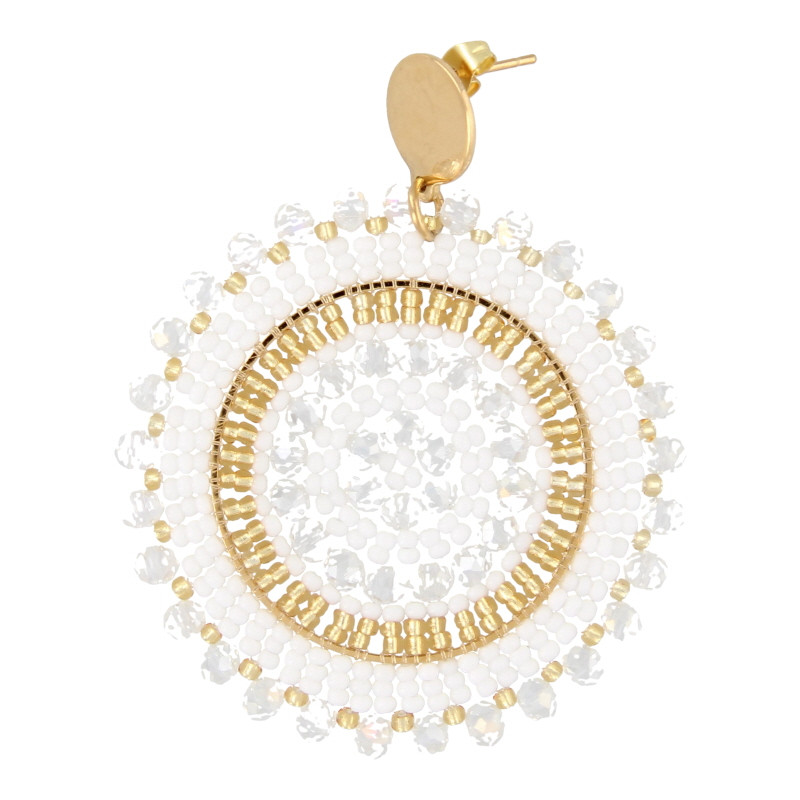 Oorbellen rond met facetkralen crystal en glaskraaltjes wit en goud