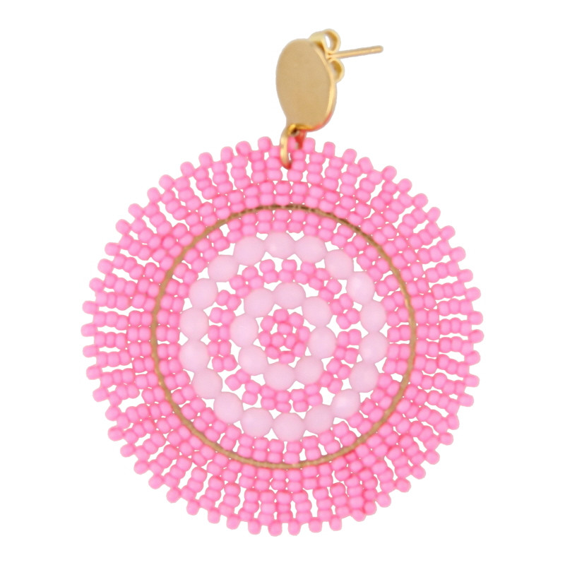 Oorbellen rond met facetkralen zachtroze en glaskraaltjes felroze