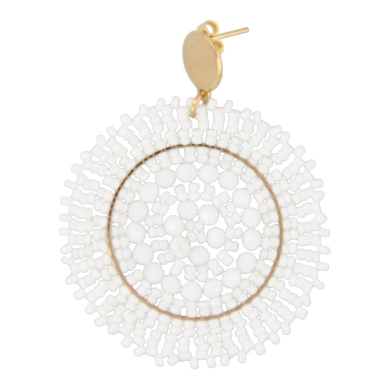 Oorbellen rond met facetkralen en glaskraaltjes wit