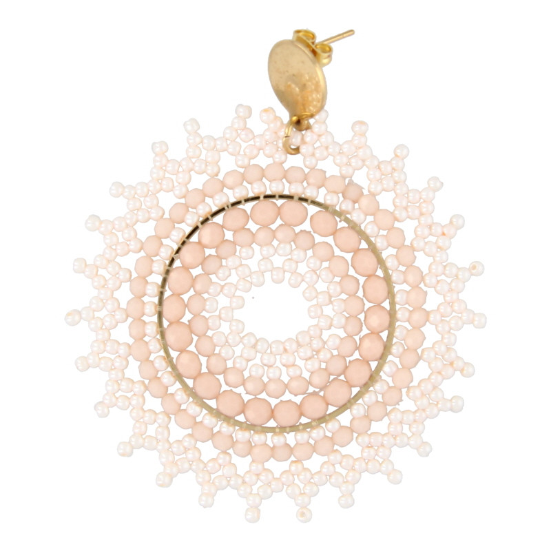 Oorbellen rond met facetkralen beige en glaskraaltjes paarlemoer