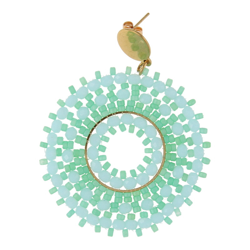 Oorbellen facetgeslepen geweven rond lichtblauw en mint