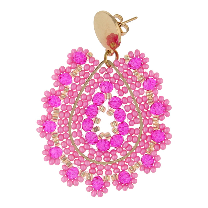 Oorbellen facetgeslepen geweven druppel roze/fuchsia