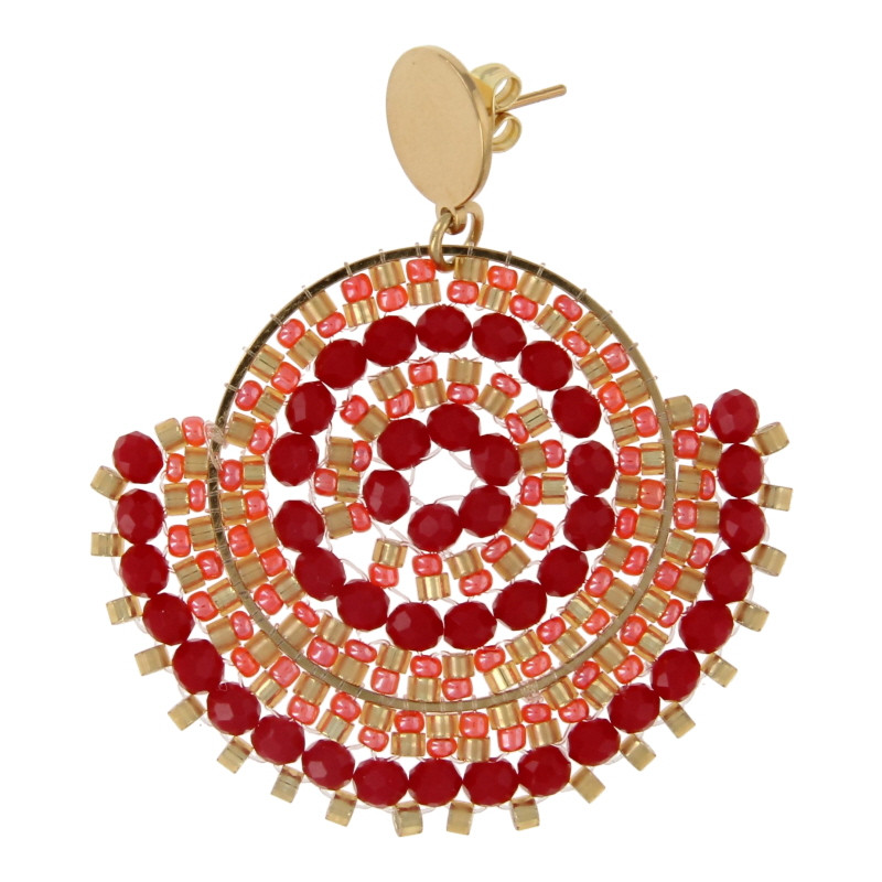 Oorbellen facetgeslepen geweven rond bordeaux/goud