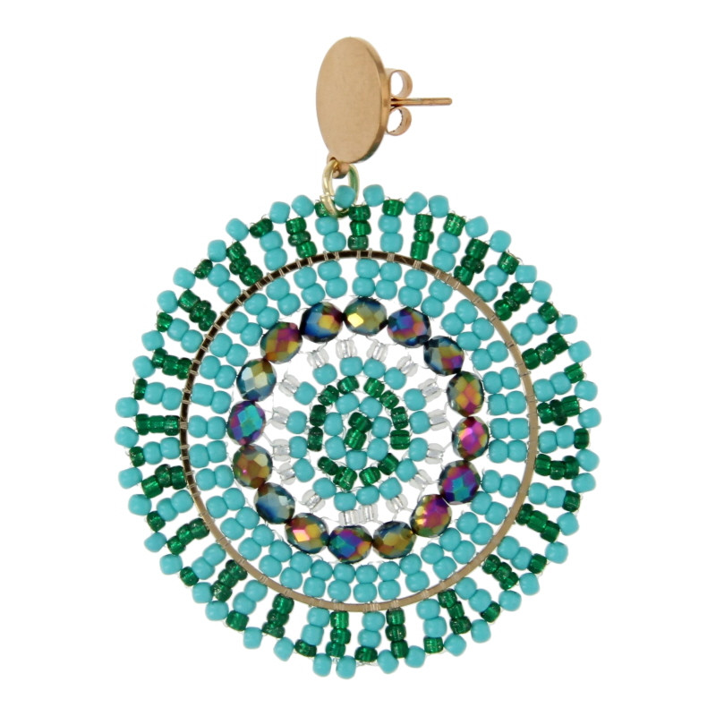 Oorbellen facetgeslepen geweven rond turquoise