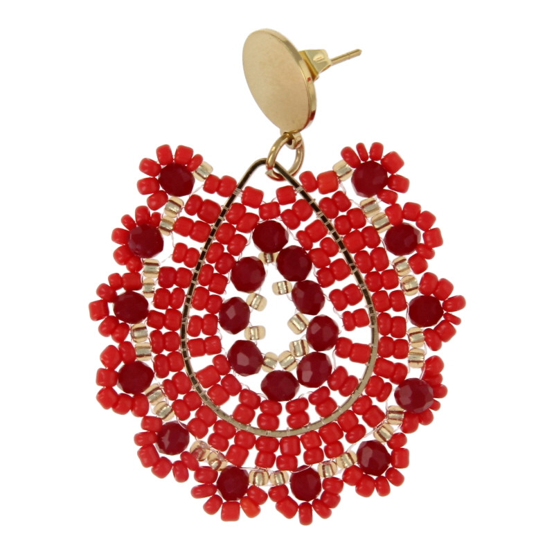 Oorbellen facetgeslepen geweven druppel rood
