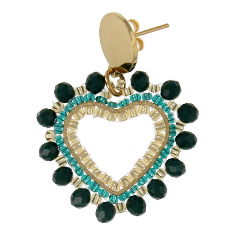 Oorbellen facetgeslepen geweven hartje donkergroen