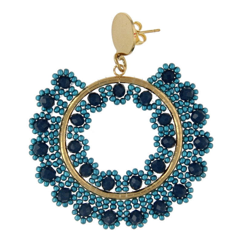 Oorbellen facetgeslepen geweven rond bloem blauw