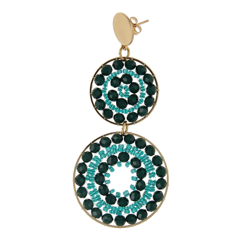 Oorbellen facetgeslepen geweven dubbel donkergroen en goud