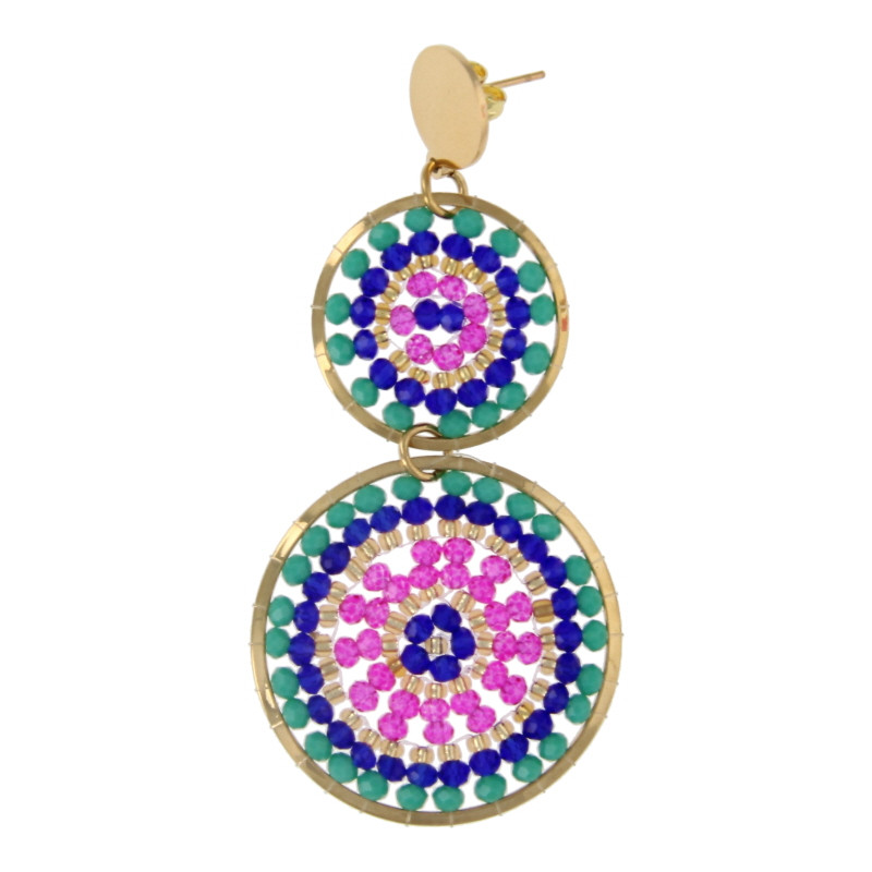 Oorbellen facetgeslepen geweven dubbel mix en goud