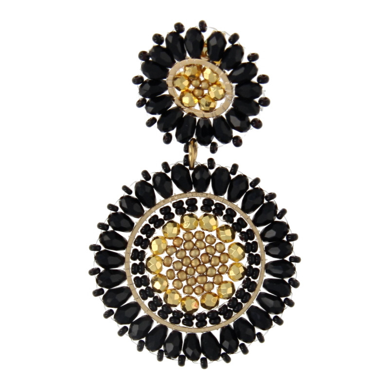Oorbellen facetgeslepen geweven dubbel zwart en goud