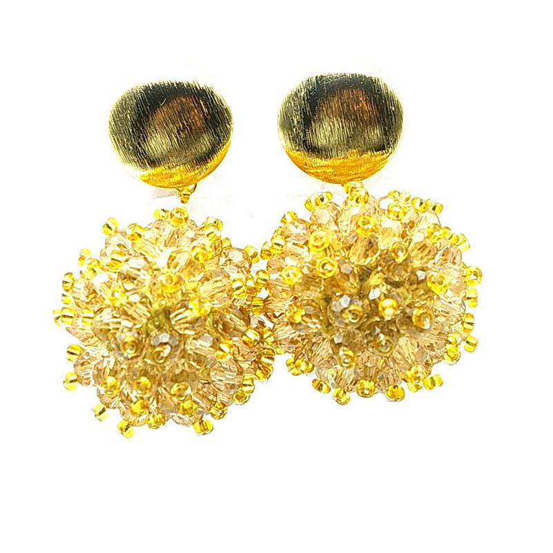 Oorbellen bol rond met facetgeslepen kralen champagne