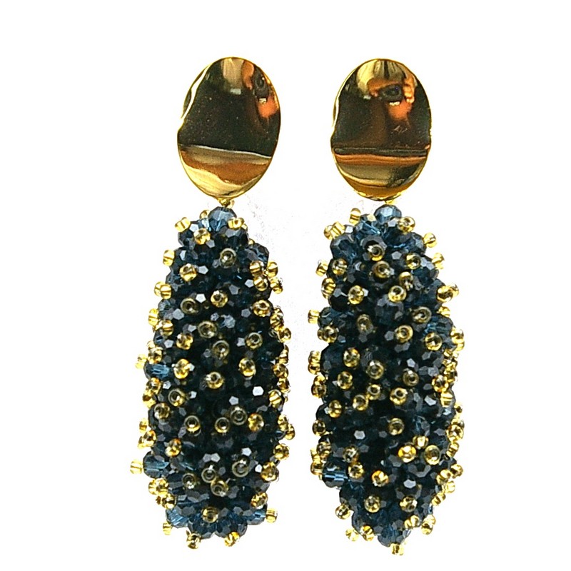Oorbellen facetgeslepen glas druppel groot donkerblauw