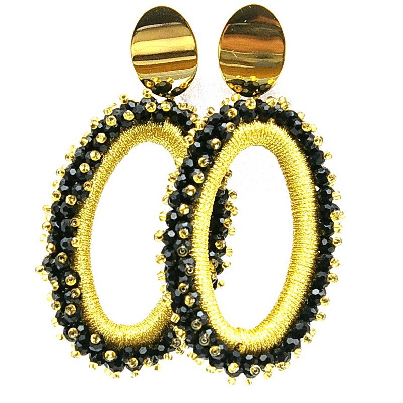 Oorbellen facetgeslepen ovaal open zwart