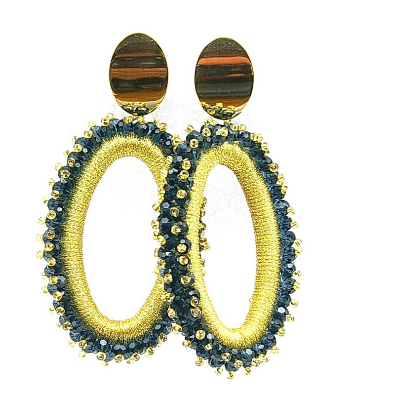 Oorbellen facetgeslepen ovaal open donkerblauw
