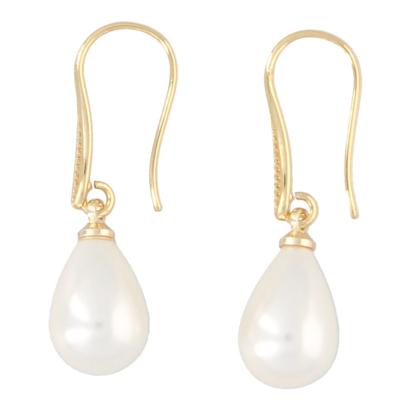 Oorbellen gouden hanger met druppel glasparel